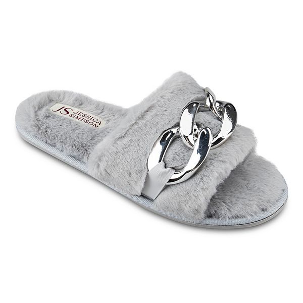 JS Jessica Simpson Women s Faux Fur Chain Link Embellished Slide Very well made.