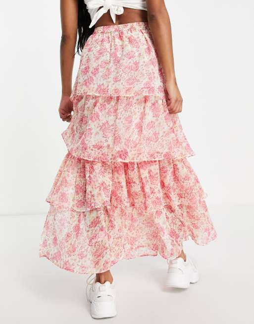 Tiers Of Joy Ruffle Maxi Skirt Pink Very well made.