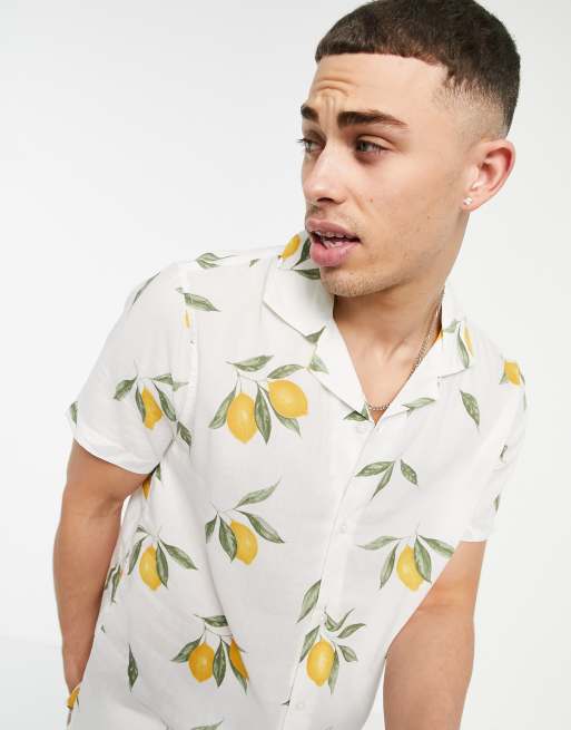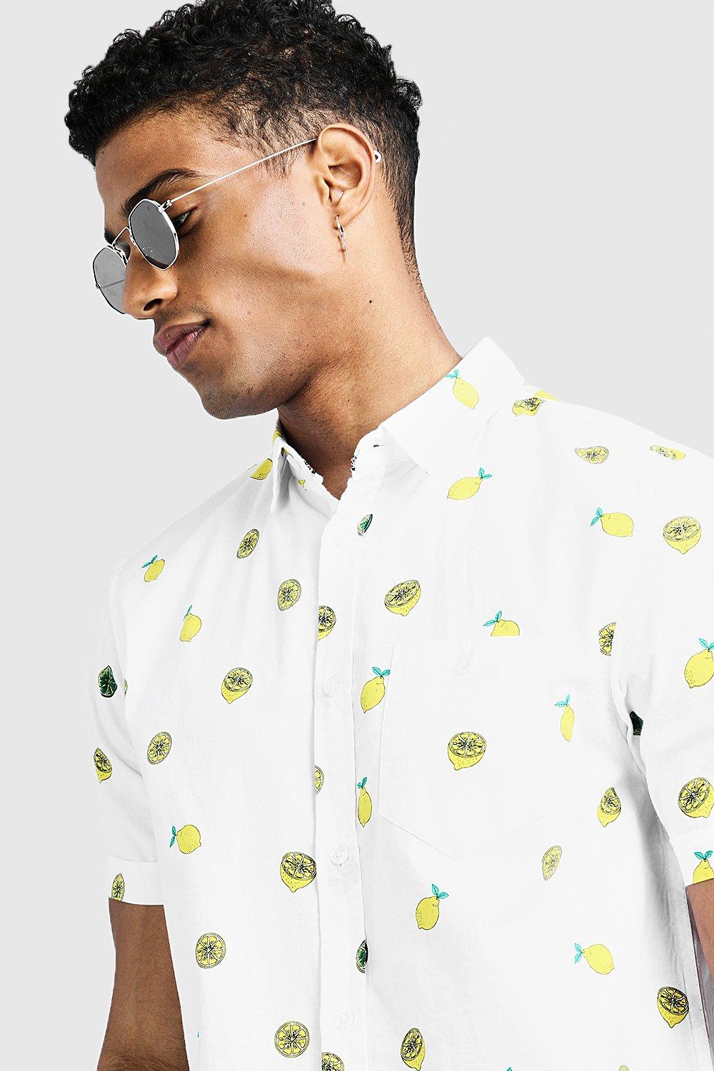 Lemon Print Short Sleeve Cotton Shirt boohoo Very well made.