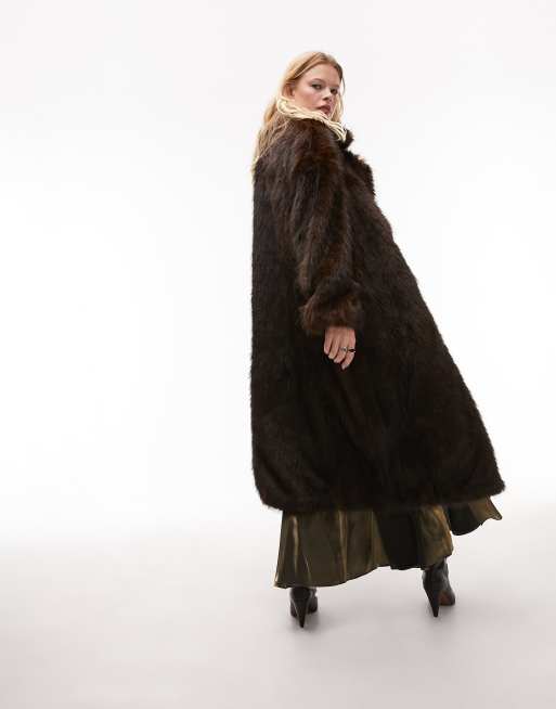 Topshop oversized long line faux fur coat in bright orange Very well made.