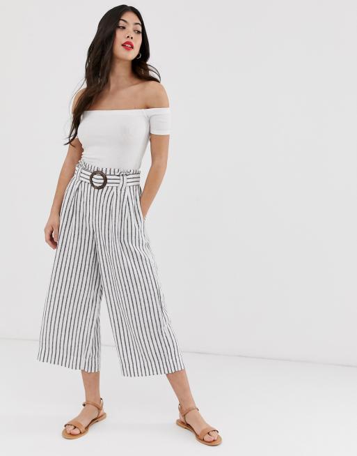 New Look Petite stripe linen crop pants in cream pattern Very well made.