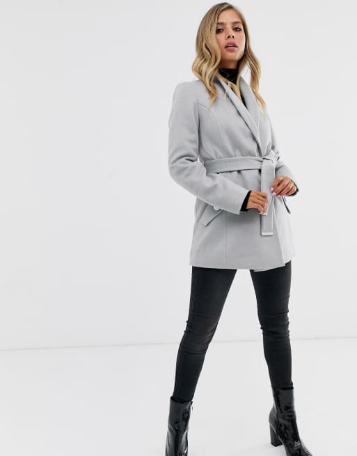 Lipsy smart wrap coat in silver gray Very well made.