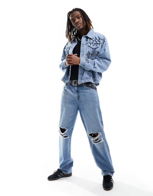 Liquor N Poker Washed Denim Jacket Large Depop Very well made.