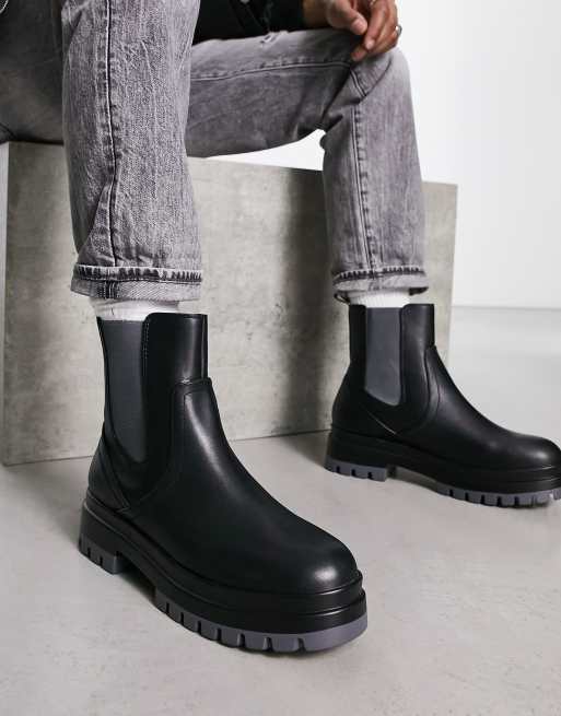 London Rebel X chunky chelsea boots with contrast sole in black grey Very well made.