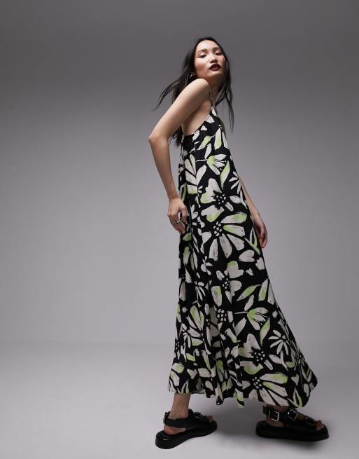 Topshop premium viscose twill graphic floral contrast stitch chuck on midi dress Very well made.