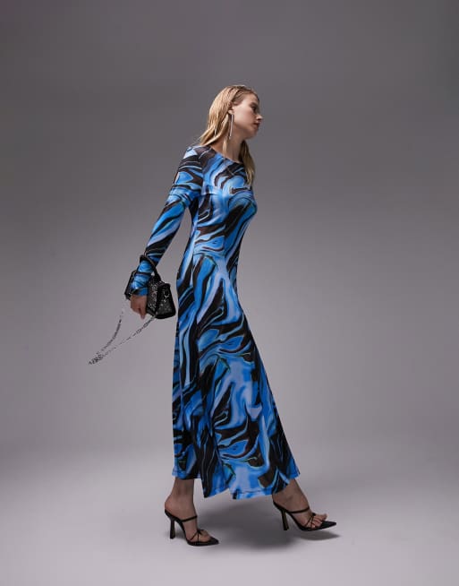 Topshop abstract swirl full skirt midi dress in blue Very well made.