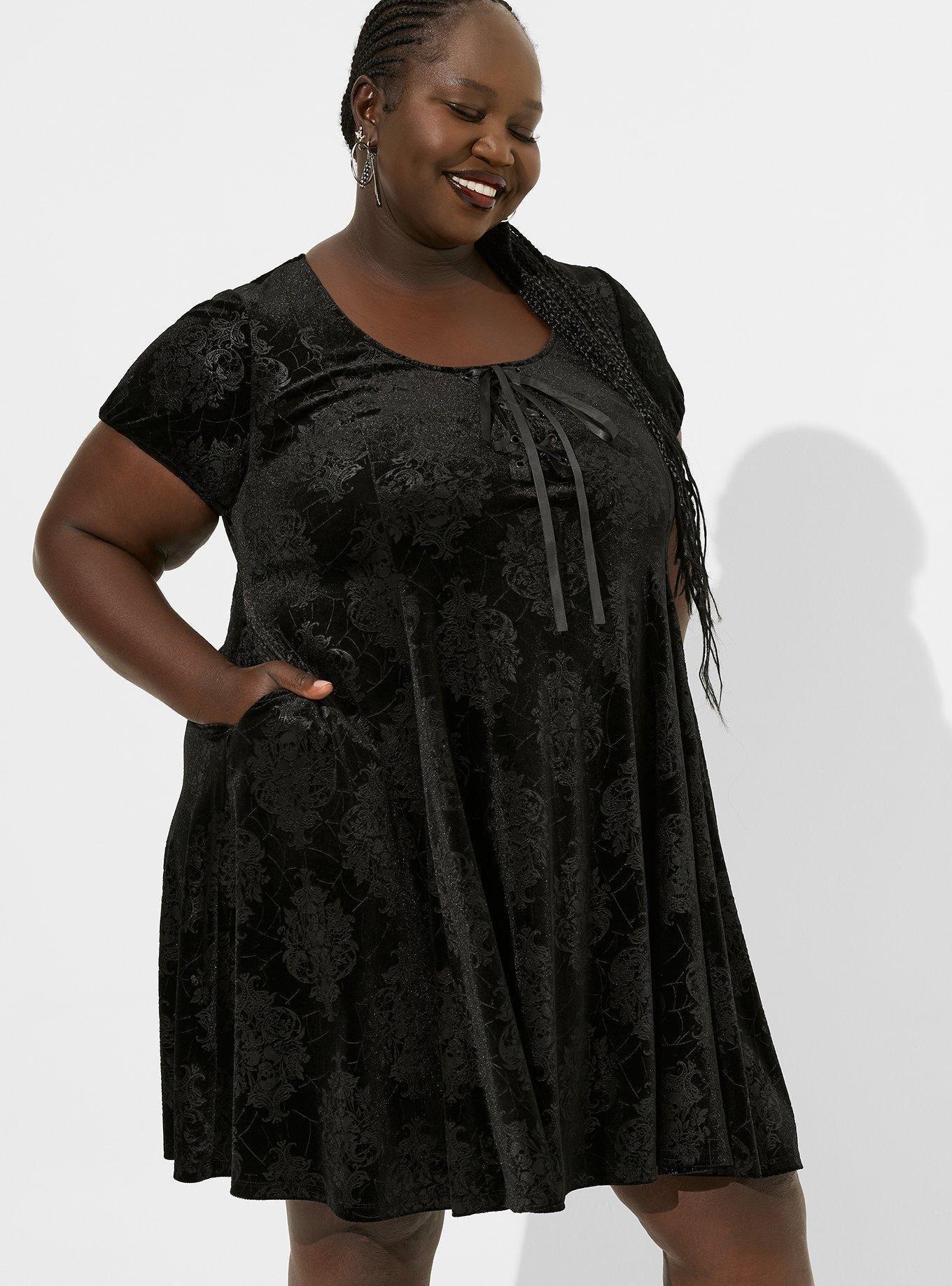 Plus Size Fit N Flare Mini Embossed Velvet Tie Front Dress Torrid Very well made.
