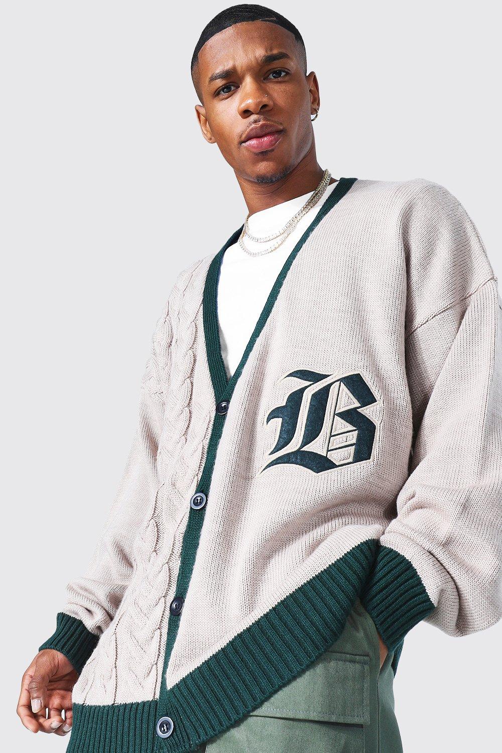 Oversized Spliced Knit Gothic B Varsity Cardigan Very well made.