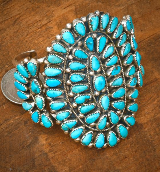 Navajo cluster cuff with 66 real turquoise stones. SOLD 2365 Very well made.