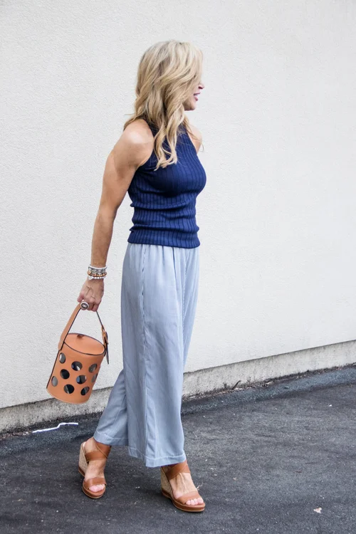 Wearing Wide Leg Pants a Trina Turk Tank Easy Outfit Idea Very well made.