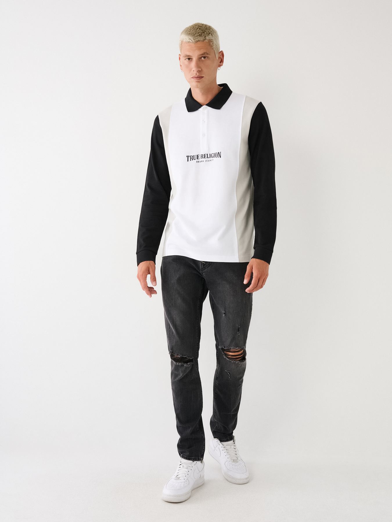 Shop True Religion Men Solid Polo Collar Long Sleeves T Shirt Very well made.