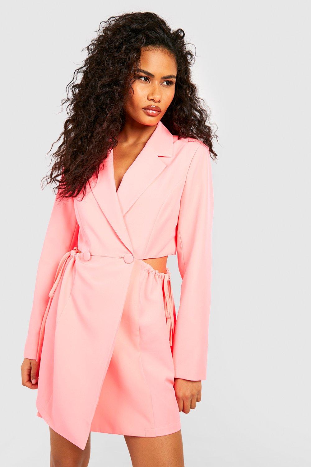 Neon Ruched Tie Side Blazer Dress boohoo Very well made.