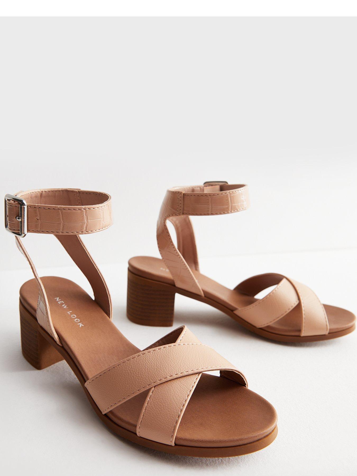 New Look Cream Leather Look Cross Strap Block Heel Sandals Very Very well made.
