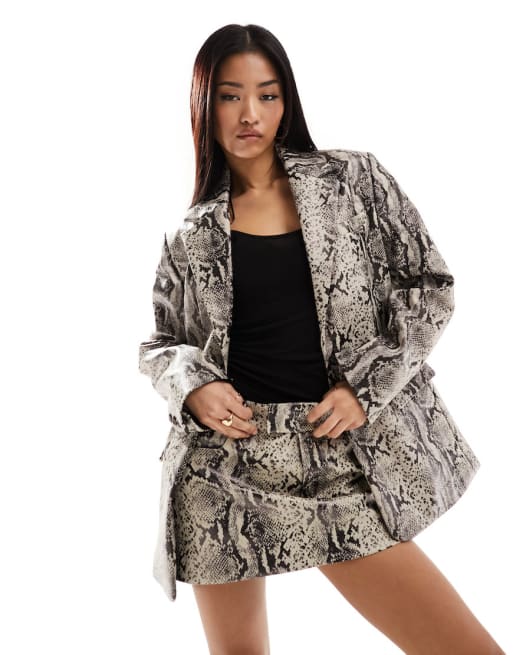 Mango leather look snake print blazer and mini skirt set in gray Very well made.