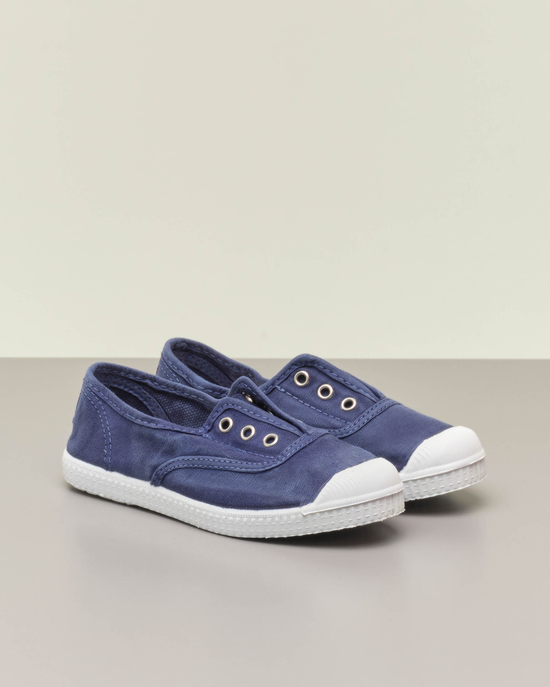 Sneakers blu senza lacci in canvas di cotone effetto stone washed Very well made.