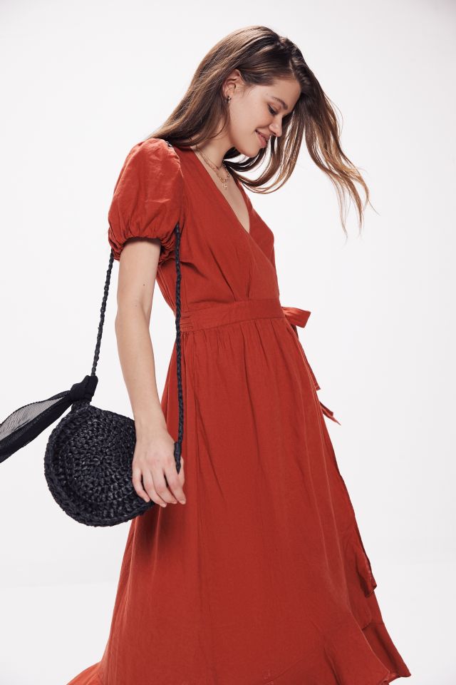 UO Gabrielle Gold Linen Midi Wrap Dress Urban Outfitters UK Very well made.