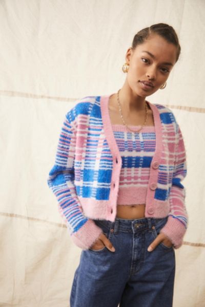 UO Baby Pink Blue Plaid Cardigan Urban Outfitters Very well made.