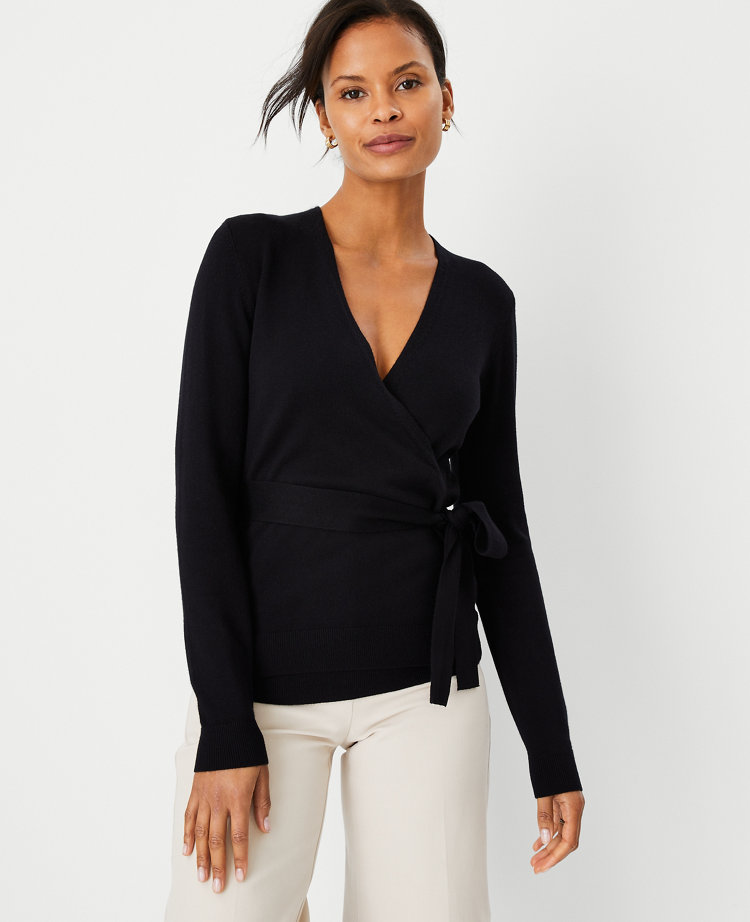 Black Wrap V Neck Sweater with Side Tie Rockmans Very well made.