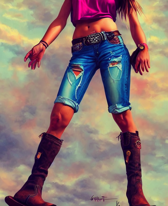 prompthunt Hot cowgirl short tanktop ripped jeans minishorts Very well made.