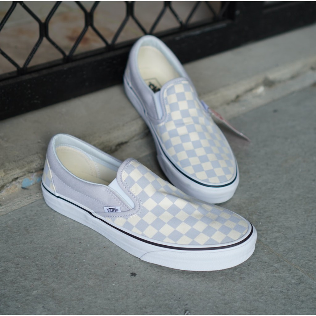 Vans Women s Classic Slip On Checkerboard Skate Shoe Gray Dawn Blue White Size 7 Very well made.