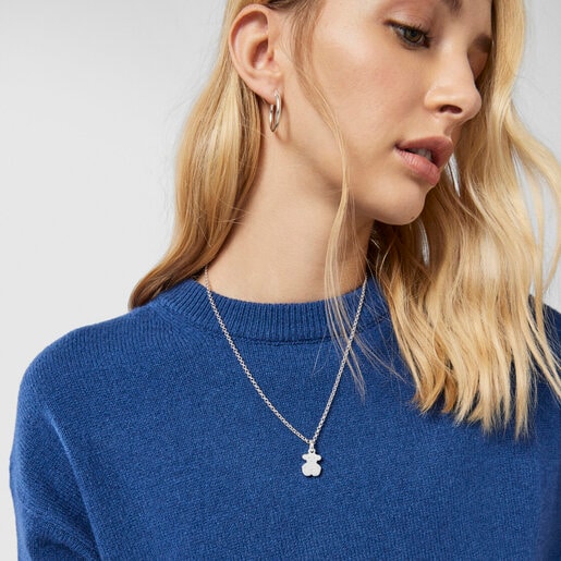 Silver Bold Bear Necklace with oval rings TOUS Very well made.
