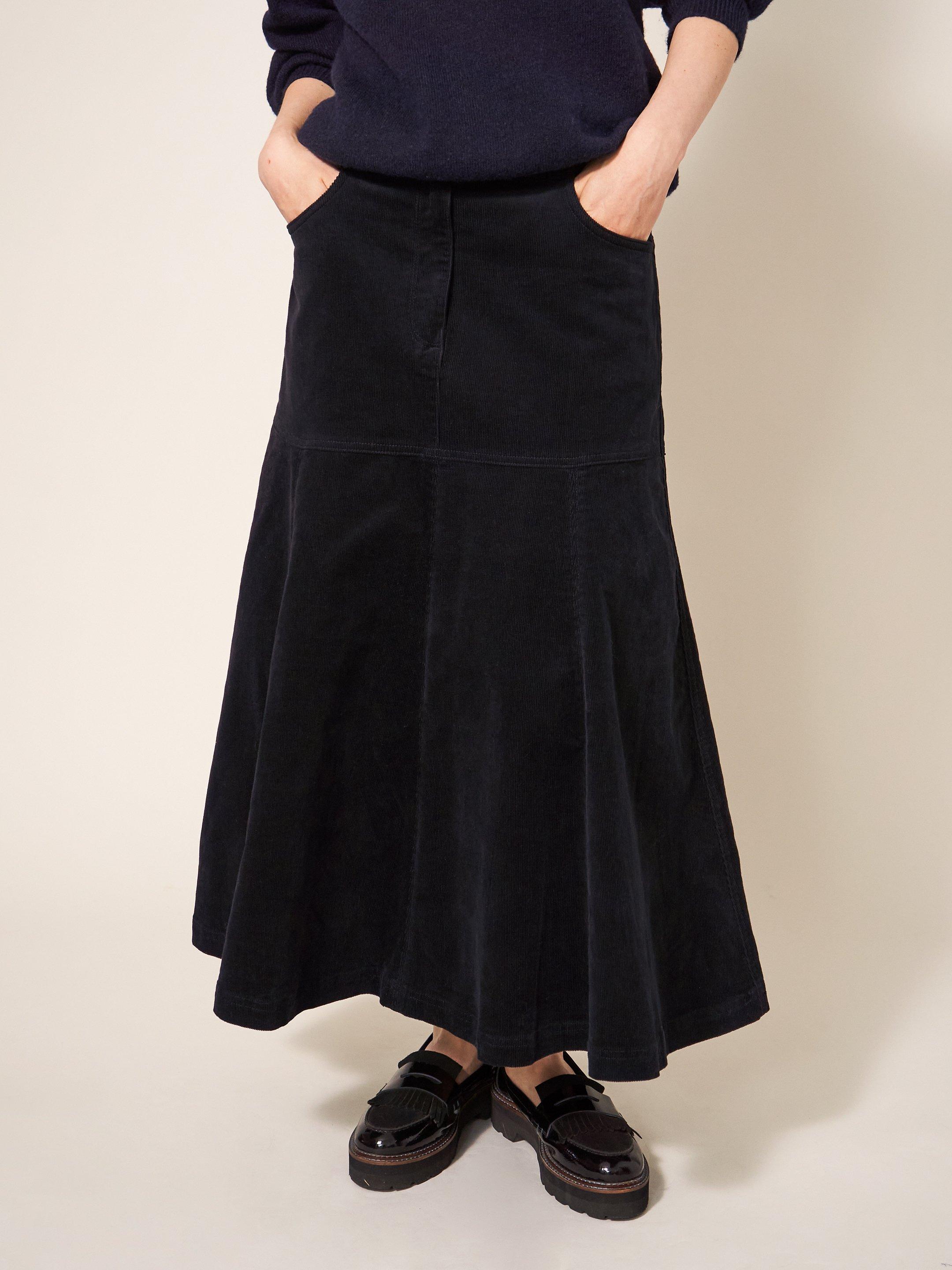 White Stuff Organic Cotton Blend Corduroy Skirt Pure Black at Very well made.