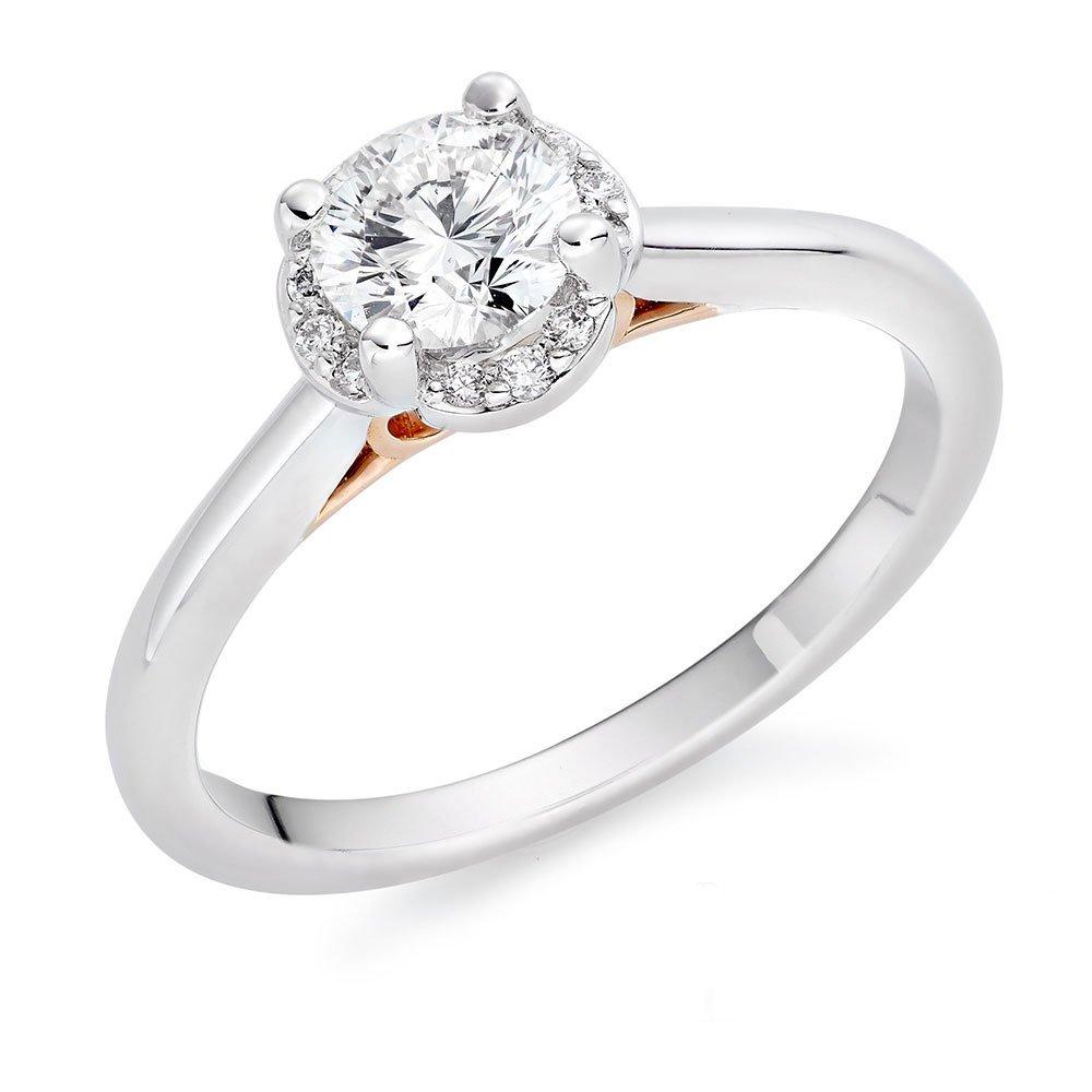 BEAVERBROOKS Rose Hearts 18ct White Gold and Rose Gold Diamond Solitaire Ring Very well made.