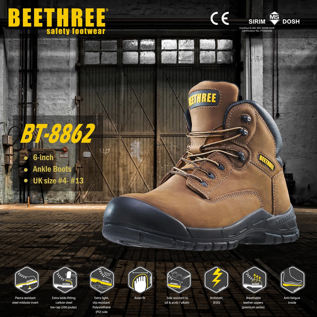 BEETHREE BT8832 6.5INCHES LACE UP ANKLE BOOTS SAFETY SHOES Safety Very well made.