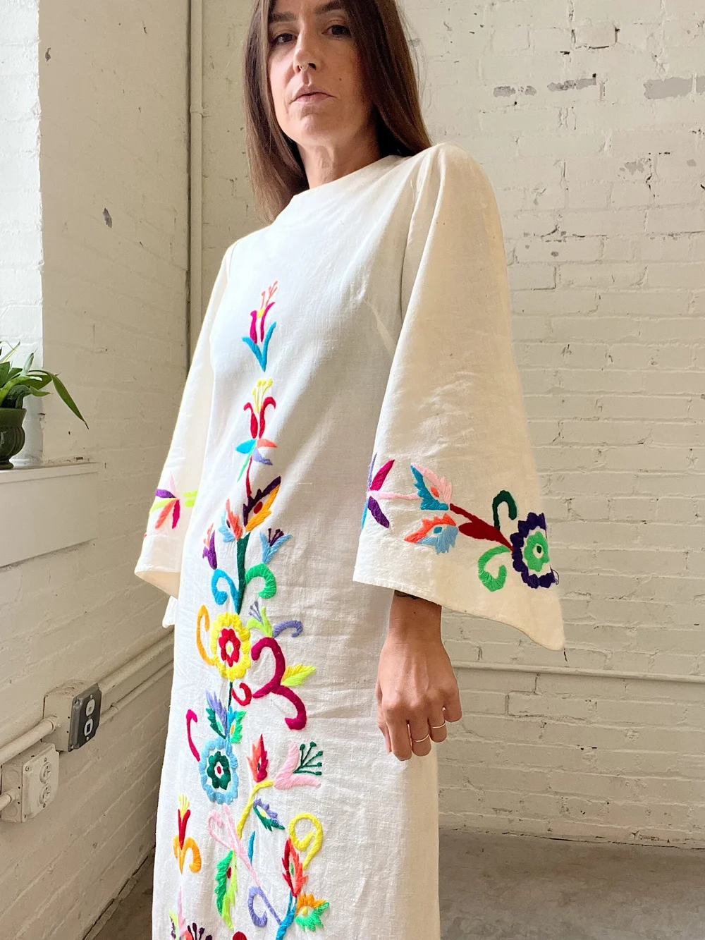 50s Casa Taxco Mexican Embroidered White Cotton Maxi Dress w Bell Sleeves Small May s Place Be Green. Buy Vintage Very well made.