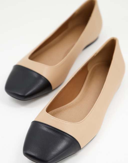 ASOS DESIGN Wide Fit Locket square toe ballet flats in beige and black Very well made.
