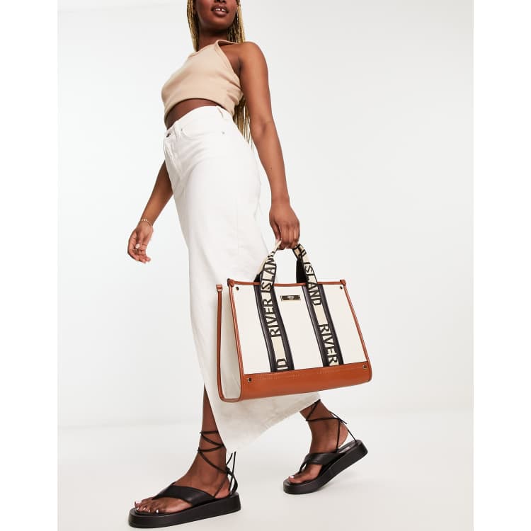 Personalised Beige Tote Bag with Brown Grey White Stripes Purlee Very well made.