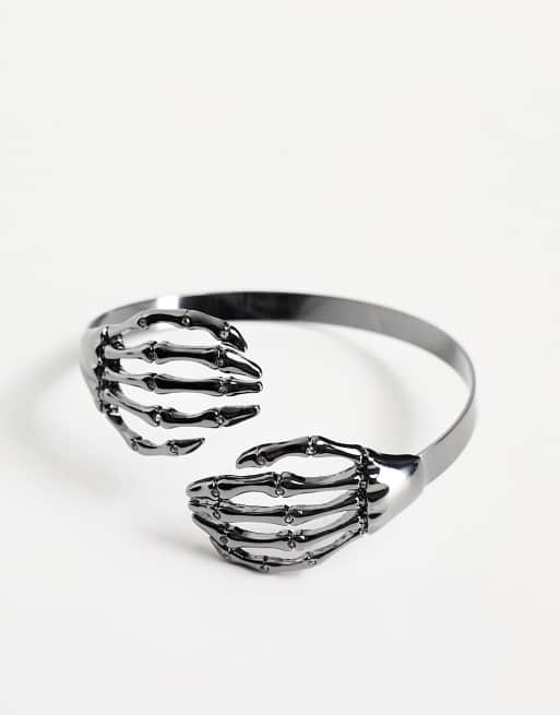 ASOS DESIGN arm cuff with wraparound skeleton design in silver Very well made.