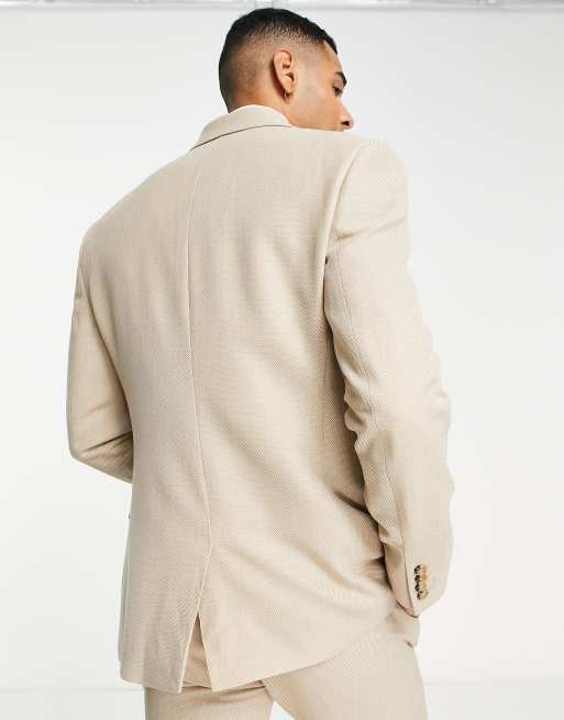ASOS DESIGN wedding skinny suit jacket in linen mix in micro texture in beige Very well made.