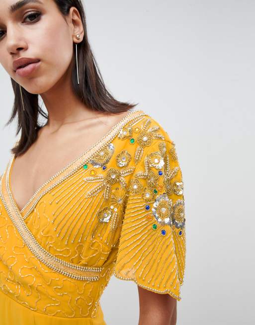 Virgos Lounge julisa embellished wrap midi dress in mustard Very well made.
