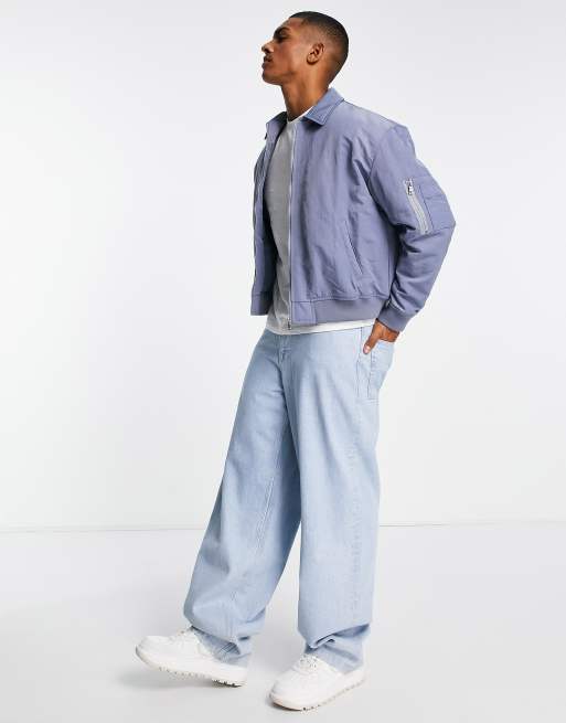 ASOS DESIGN washed oversized bomber jacket with MA1 pocket in blue Very well made.