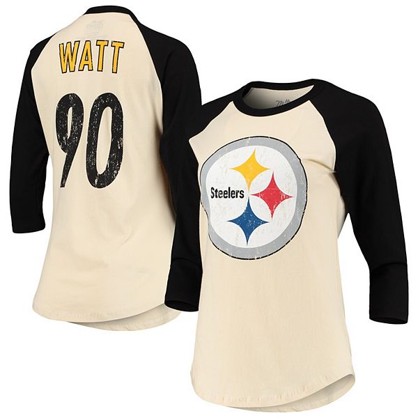 Women s Fanatics Branded T.J. Watt Cream Black Pittsburgh Steelers Player Raglan Name Number 3 4 Sleeve T Shirt Very well made.