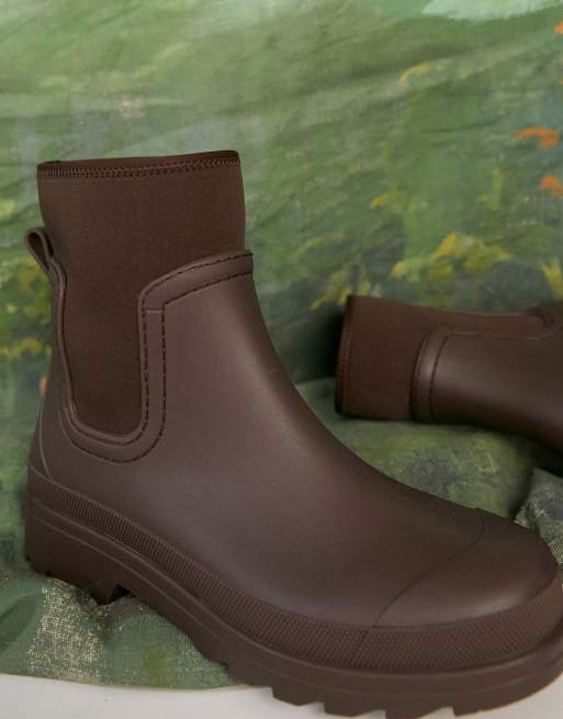 ASOS DESIGN wellington boots with scuba detail in brown Very well made.
