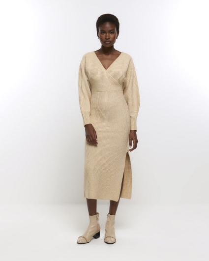 Billie Ribbed Racer Midi Dress Beige Pretty Lavish Very well made.