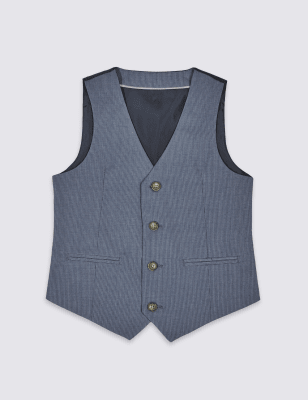 NIFV551 BLUE Slim Fit Chain Point 4 Button Waistcoat Mens Very well made.