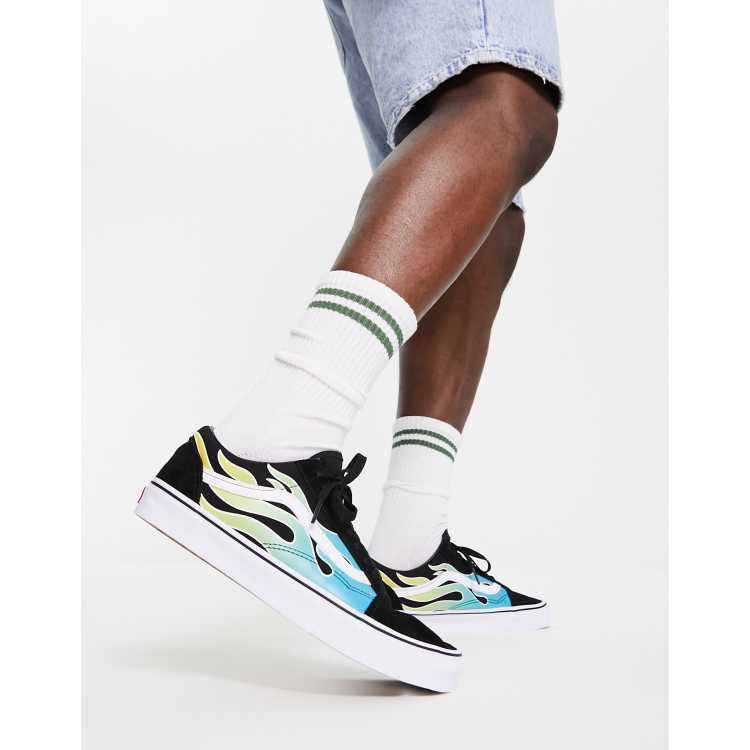 Vans Old Skool Flame printed sneakers in black and blue Very well made.