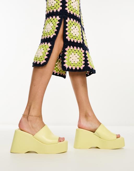 ALDO Betta wedge sandals in pastel yellow leather Very well made.