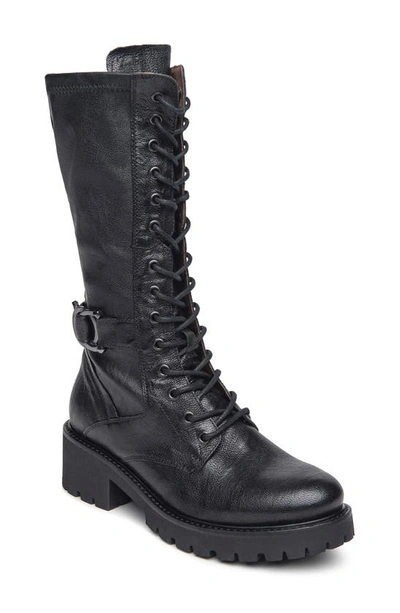 Calfskin Buckle Lace up Moto Boots In Black Very well made.
