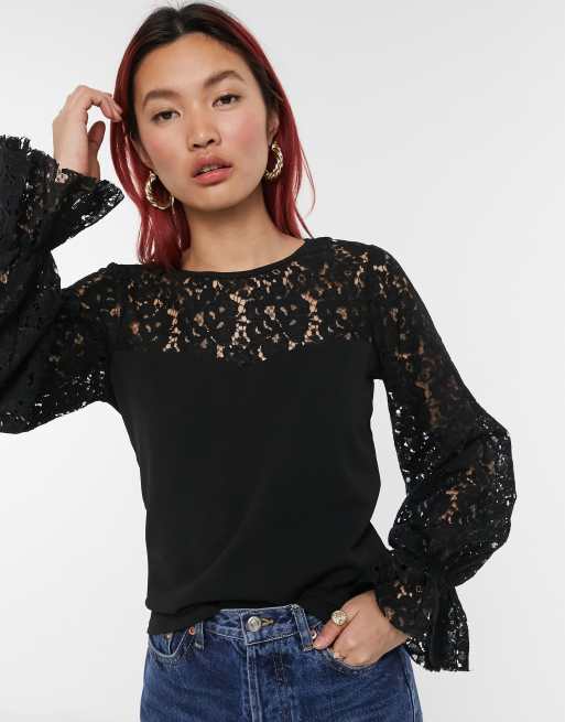 River Island Blusa con maniche a sbuffo in pizzo nero Very well made.