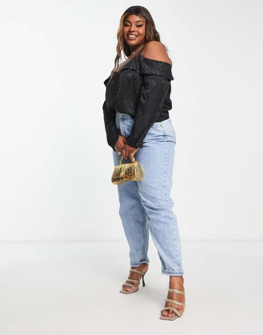 ASOS DESIGN Curve Blusa in jacquard nera tigrata con spalle scoperte Very well made.