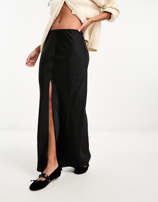 ASOS DESIGN split front satin bias maxi skirt in black Very well made.