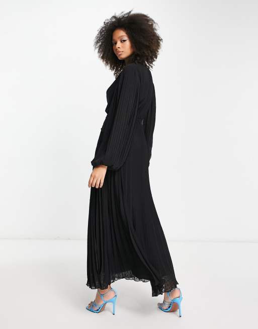 ASOS DESIGN pleated wrap button detail maxi dress in black Very well made.