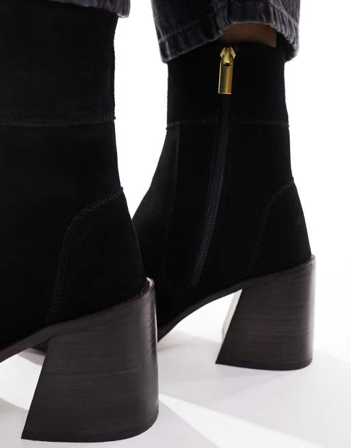 ASOS DESIGN Region suede mid heel boots in black Very well made.