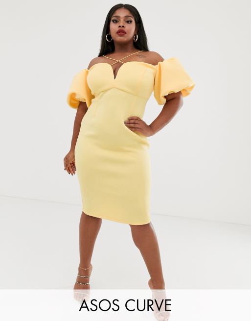ASOS DESIGN Curve bardot bubble sleeve strappy midi dress Very well made.