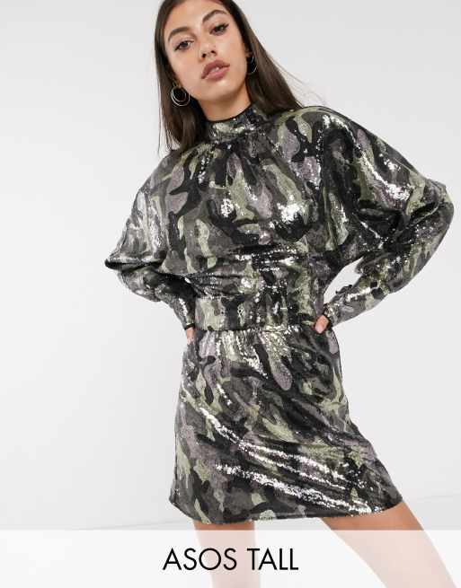 ASOS DESIGN Tall mini dress in camo sequin in slouchy fit with belt Very well made.