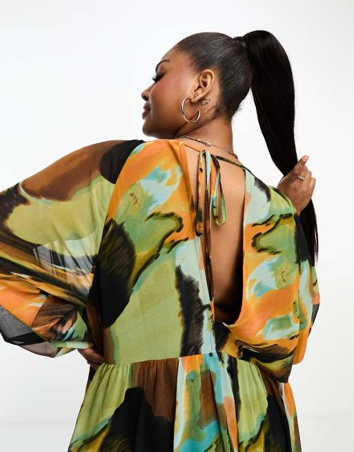 ASOS DESIGN Curve chiffon maxi smock dress with scallop waist in Very well made.